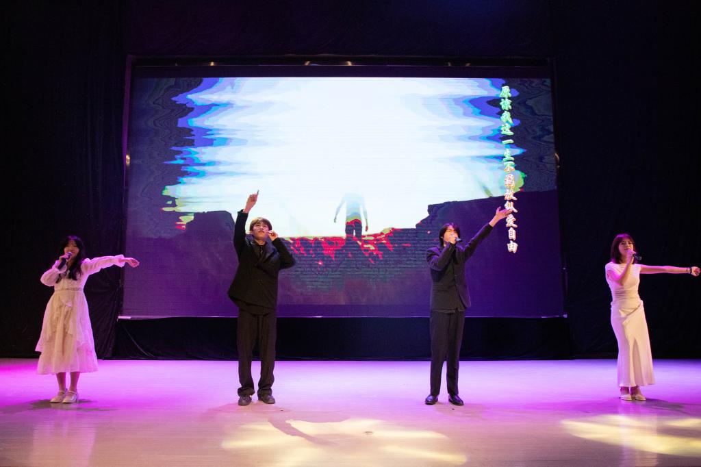 晚会主题鲜明,格调高雅,分为“绘山河·初心印记笔”“镜映时代·青春律动”“影留华年·韶华如诗”“薪火永续·共谱新篇”四个篇章,融思想性、艺术性与教育性于一体。开场舞《Hot Sauce》以蓬勃朝气瞬间点燃全场;朗诵《永不消逝的声音》《战地女记者的故事》回溯新闻事业的红色初心,展现了新闻工作者矢志不渝的忠诚与担当;歌曲《海阔天空》《城市之光》唱响了青年学子胸怀理想、勇立潮头的时代强音;小品《记者奇遇》和情景剧《通讯员2》则生动还原了校园记者的工作日常,于诙谐中见精神,体现了新时代新闻人的职业素养与情怀。