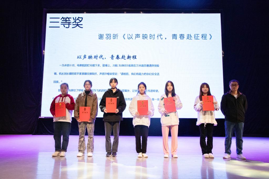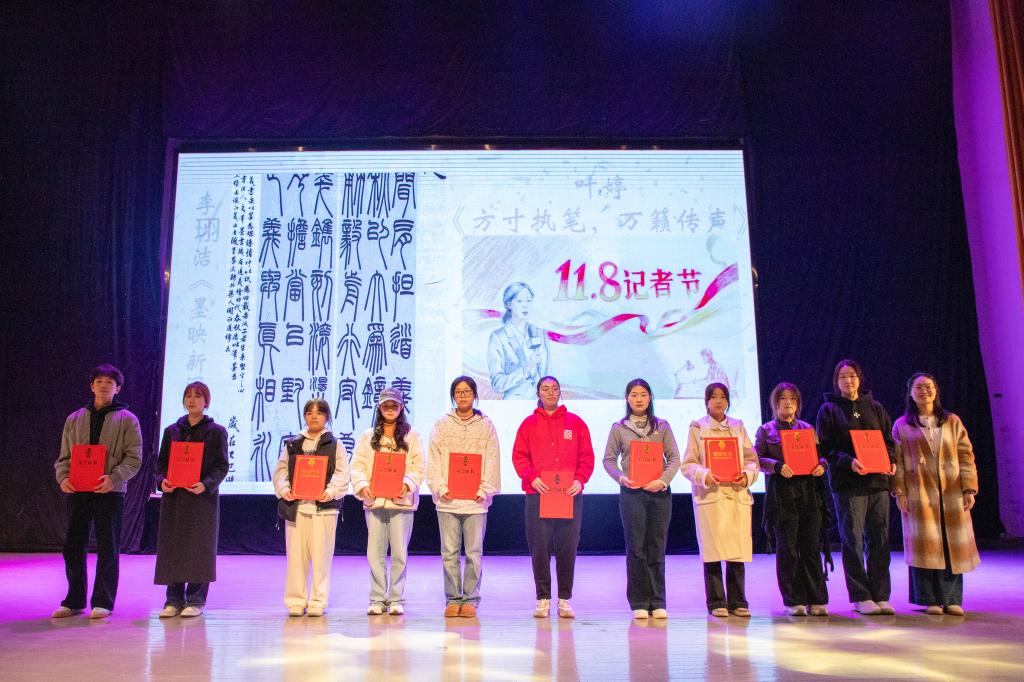活动中,党委宣传部何媛媛老师宣读了本届记者节系列征集活动的获奖名单。随后,何媛媛老师、唐秀君老师、张天林老师为在通讯稿、文艺作品、摄影、短视频及征文比赛中脱颖而出的优秀学子颁奖。这些作品聚焦时代发展、校园变迁和青春奋斗,集中展示了我校学子扎实的专业功底和积极向上的精神风貌,是学校实践育人成果的生动体现。